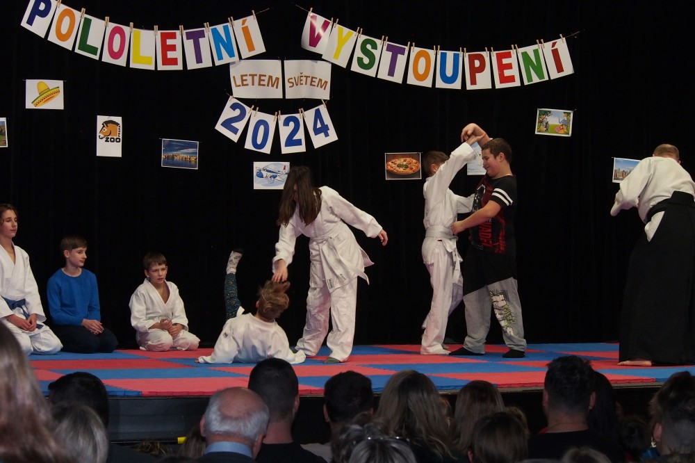 V pátek 19.1. 2024 se uskutečnil již 17. ročník Pololetního vystoupení, na kterém vystupovalo téměř 100 dětí z gymnastiky, Pódiových skladeb a aikida.